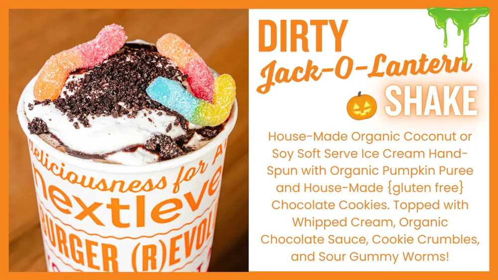 But cozy season also means spooky season – and spooky season calls for spooky sips. 👻 Meet the Dirty Jack-O-Lantern Shake: organic pumpkin, house-made chocolate cookies, whipped cream, chocolate sauce, and sour gummy worms all hand-spun with organic soft serve. Creamy, crunchy, spooky, sweet.
